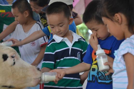 游園的尾聲,我們又回到了奶牛場,看到了工作人員在給奶牛媽媽人工擠奶,孩子們都睜大了眼睛,認真地觀看著,生怕錯過了某一個環(huán)節(jié)。擠完奶,工作人員將奶桶拿給在場的每個人看、聞,哎呀,原來,剛擠出來的新鮮的牛奶一點都不腥,還有一股香香甜甜的味道呢!在人工擠奶之后,我們又參觀了機械化的擠奶流程,工作人員向我們詳細介紹了我們天天品嘗的美味牛奶是怎么樣生產(chǎn)的,也介紹了奶牛的一生。