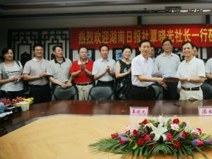 5月19日至21日,湖南日報報業(yè)集團(tuán)覃曉光社長率報社領(lǐng)導(dǎo)班子、湖南日報傳媒大廈項(xiàng)目組成員一行13人蒞臨我司考察,公司董事長梁鍵、總經(jīng)理劉瓊祥、監(jiān)事會主席趙飛、黨委副書記王江濤、財務(wù)總監(jiān)蘇自申、副總經(jīng)理黃冠佳及牛盾生、總建筑師孟建民等公..