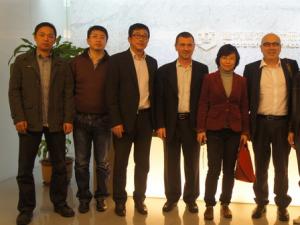 2011年12月16日下午,德國斯圖加特應用技術大學室內建筑系主任Klaus-PeterGoebel、瑞士著名設計師、瑞士盧塞恩應用技術大學室內設計系主任ThomasPlues與中瑞文化藝術交流中心周子怡主任一行三人專程來到我公司,拜訪著名建筑設計大師孟建民先生..